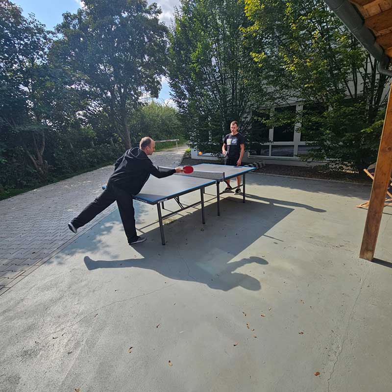 Am Freitag ging es dann pünktlich los. Nachdem erstmal alles eingerichtet war (und das dauerte natürlich bei dem einen oder anderen Senior etwas länger), standen auch schon die ersten internen Matches an. Doch die große Erkenntnis des Abends: Julian ist einfach zu gut! Wir haben demokratisch beschlossen, dass er beim nächsten Mal nur mit einer Hand spielen darf. Der Typ ist einfach zu schnell – das kann doch nicht mit rechten Dingen zugehen!